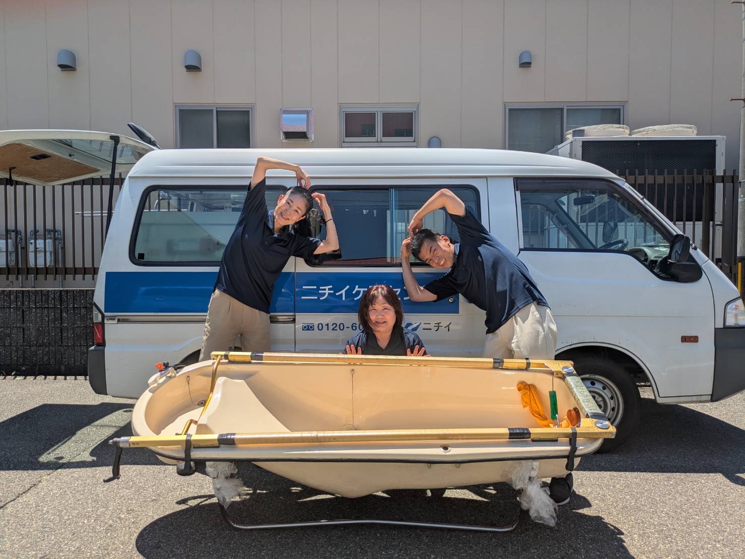 | 仕事内容 | ≪お仕事内容≫ ■スタッフの管理、シフト管理、事務所での書類作成、現場業務 ■ご自身では入浴ができないお客様の入浴介助を行います。 ■特殊な仕様の浴槽(移動式の組み立て浴槽)を持参します。 ■更衣介助・洗髪、洗身介助などを行います。 ■3人でチームを組んで入浴車でお客様のご自宅をまわります。 ≪お客様宅での訪問入浴の流れ (例)≫ お客様宅到着・入室・あいさつ ↓ 入浴準備 ↓ バイタルチェック(体調確認を看護職員が行い、安全な入浴を徹底しています) ↓ 必要な処置、着替え・タオル等の準備 ↓ 脱衣介助(スタッフ3人で細心の注意を払いながら浴槽への移動をサポート) ↓ お客様の移動、入浴開始 (お身体に負担のないよう入浴時間に配慮し、手際よく洗髪・洗身をし、ゆっくりと湯船につかっていただきます) ↓ タオル・ドライヤー乾燥、着衣介助 ↓ バイタルチェック(看護職員)、必要な処置、記録・確認印の受領 ↓ お客様宅最終チェック・あいさつ、お客様宅退出 ※一部、看護職員と共同で行う内容もあります。 |