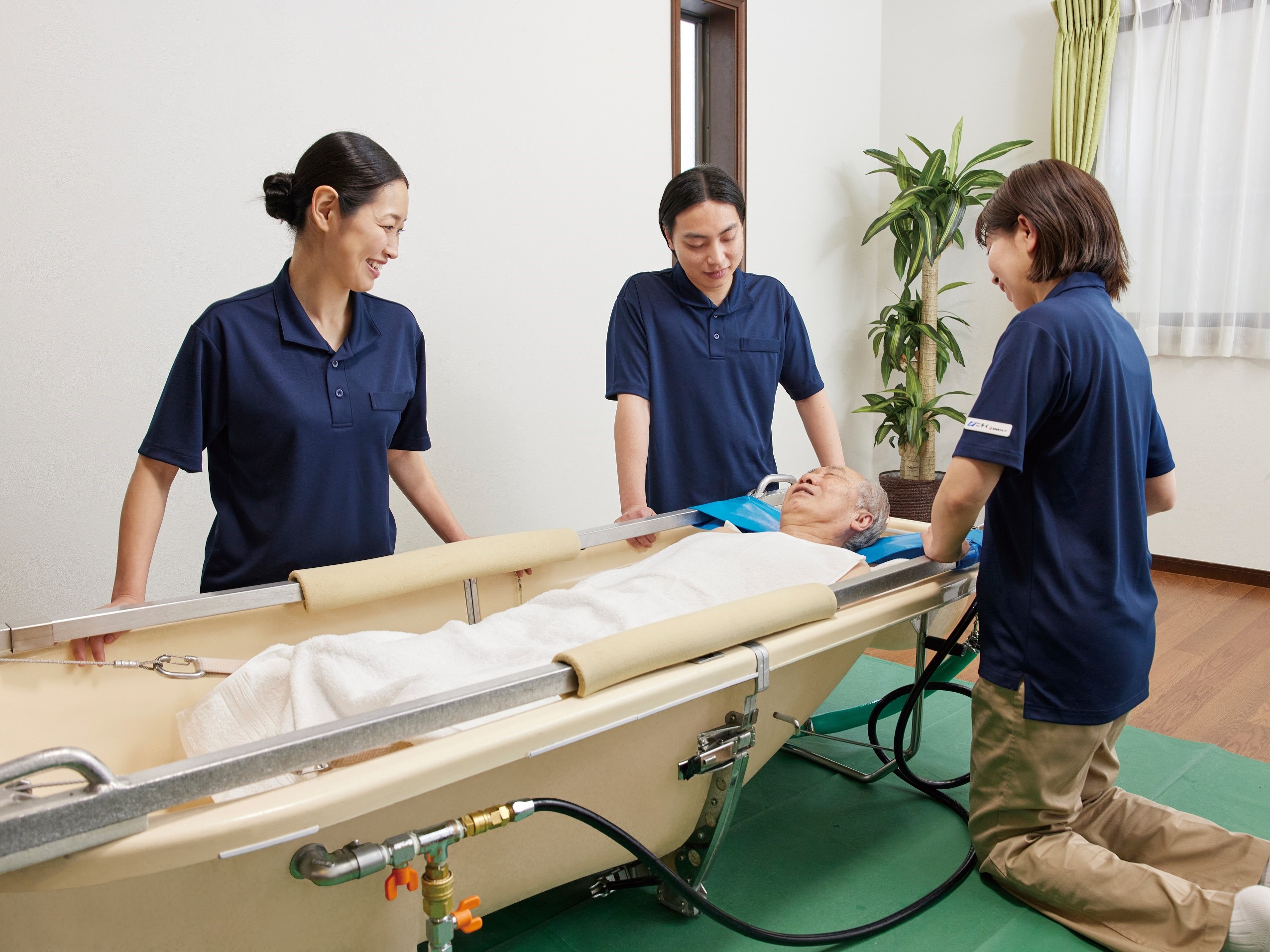 訪問入浴はチームで行うため、協力しながらお仕事をすることができます。